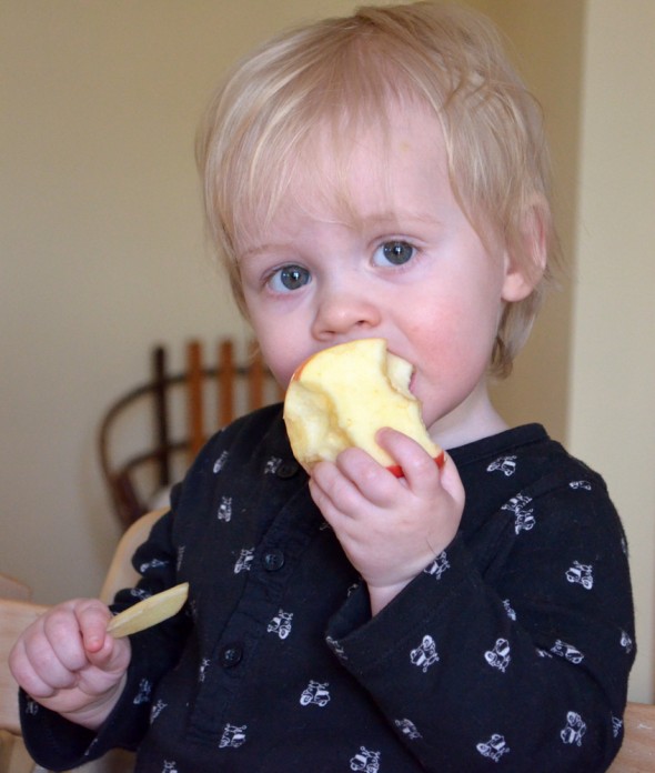 And of course the minute I post about the Peanut being a picky eater he goes and decides to bite into an apple. Three bites and he was done, but we were suitably impressed.