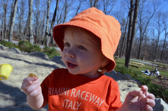 Yesterday the Peanut and I joined some friends at a local park/playground/petting zoo – an awesome place less than 20 minutes from us that’s free, not well known and perfect for little kids. I love finding places like this around us, places that aren’t overflowing with people, places where the kids can walk around, where we aren’t worried they’ll get hit by a car.