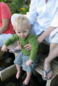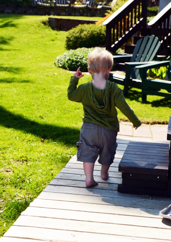 The Sister and I drove the Peanut up to visit our parents this weekend, the first trip of many, and he did amazingly well during the four hour drive. We stopped at our favorite restaurant (poutine!) along the way, which worked out well as he loved the fries and our choice of table, and ended the day with a dip in the hotel pool. (Shocker, he LOVES the pool, lol.)
